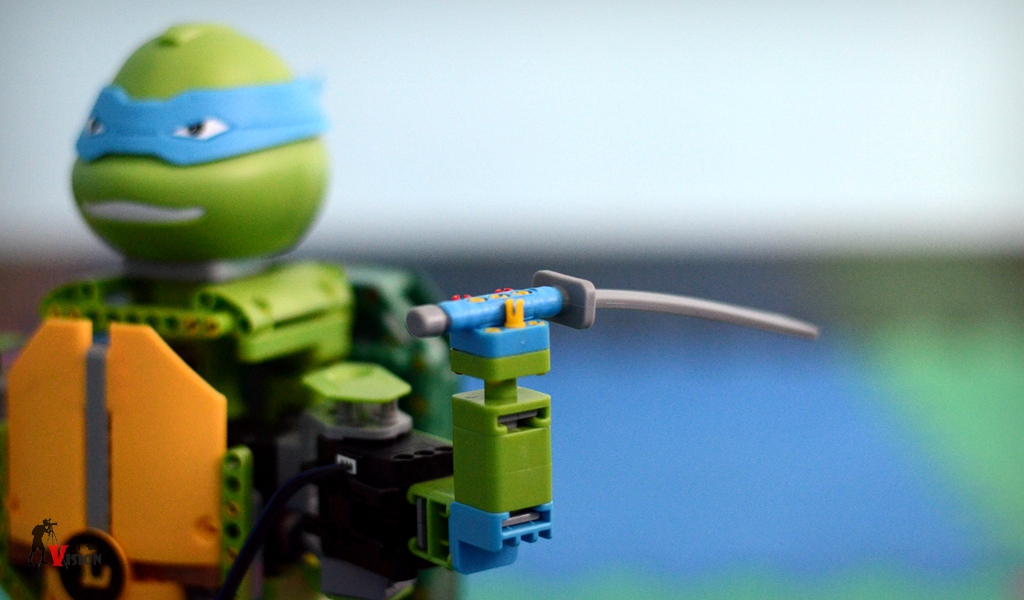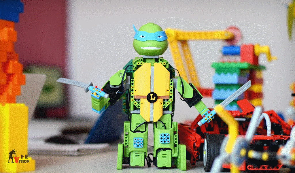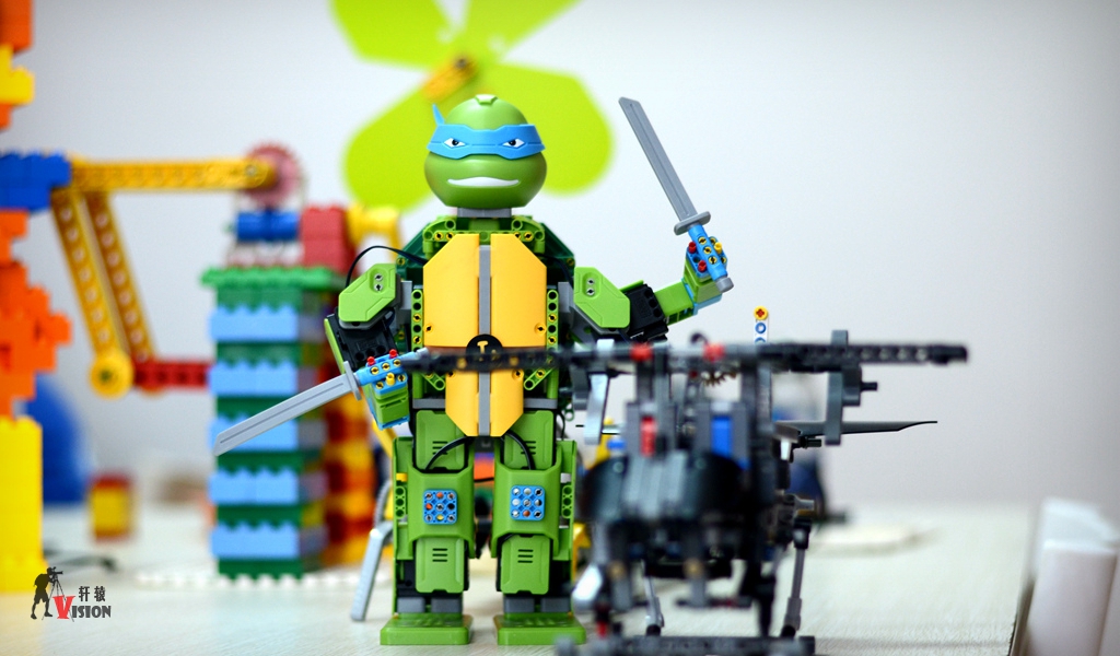▲除去它是拼装颗粒积木、忍者龟卡通动漫的外形、最重要的是它还是一款仿人机器人。