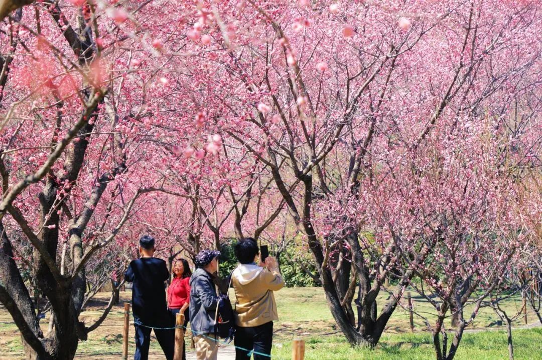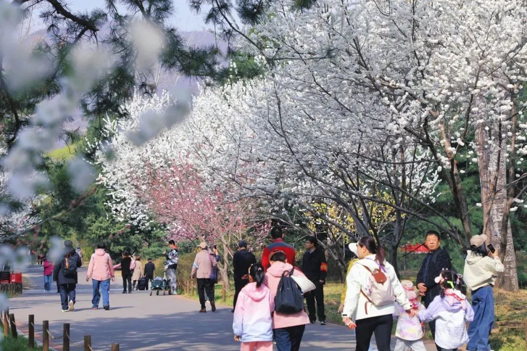 北园桃花谷山桃如云絮漫铺枝头,浅粉花瓣在春风里轻颤,随手抓拍皆是 “春日氛围感大片”。3月15日至4月7日,北园桃花谷主景区及周边草坪区域更有“桃红多巴胺”市集活动等你来打卡。