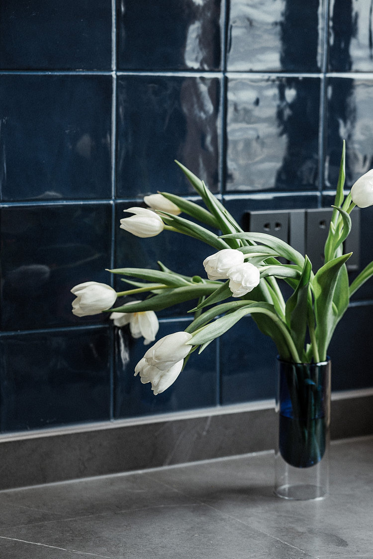 偶尔下班回家路过小区外的花店,会买来一些鲜花,插入家中各式各样的花瓶里,一个人也可以享受浪漫精致的生活。