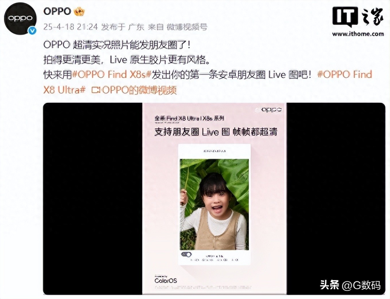 今天凌晨OPPO扔出王炸——Find X8 Ultra/X8s系列用户即日起可在朋友圈发布超清实况照片!再也不用忍受动态图上传后糊成马赛克的尴尬,现在连睫毛颤动都能看清,背景音乐还能同步播放,堪称朋友圈「内卷神器」!