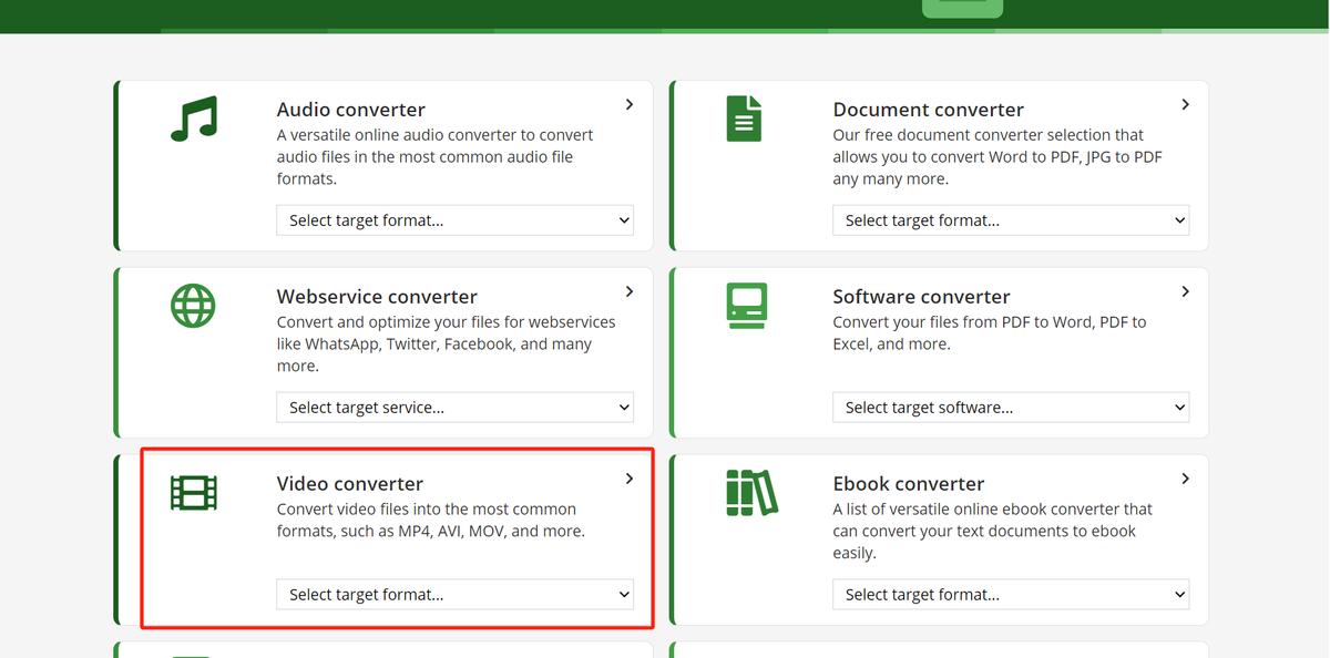 步骤1:输入网址。在浏览器中输入Online-convert网址,找到并点击第三行左侧【Video converter】按钮,浏览并选择需要转换的MKV格式视频。