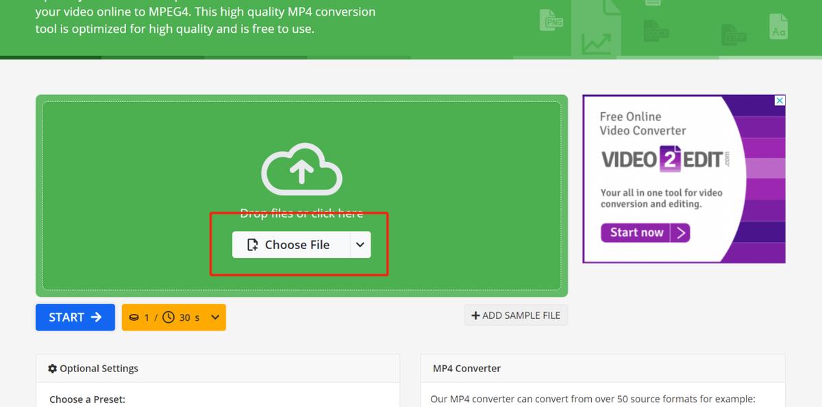 步骤2:在跳转的页面上点击第三行最左侧的【Convert to MP4】按钮。