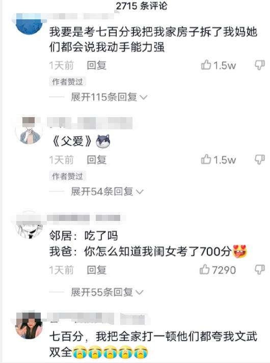 高考700分是什么概念?爸爸每天早起给儿子磕头,网友们神回复