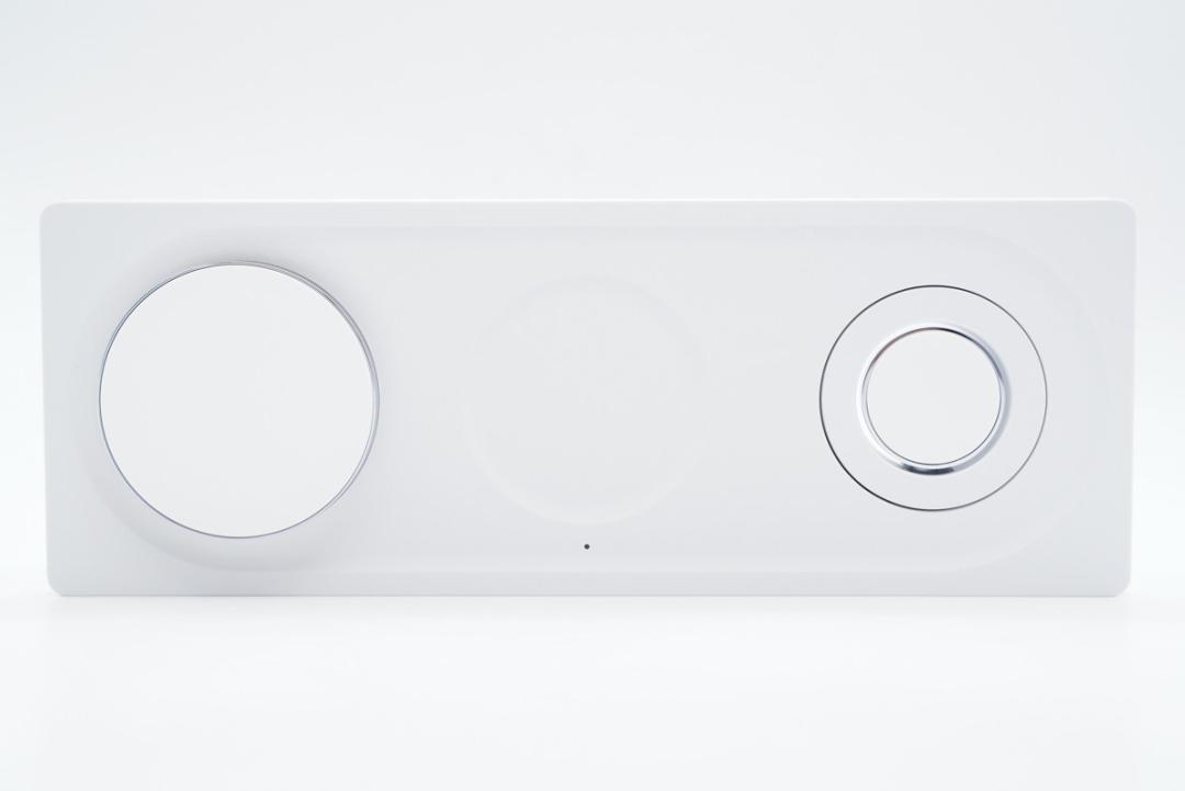 ANKER 三合一无线充电器外观比较有特色,为可变型的魔方设计,体积小巧不占位置,拥有手机磁吸无线充电、耳机充电及手表充电区域。