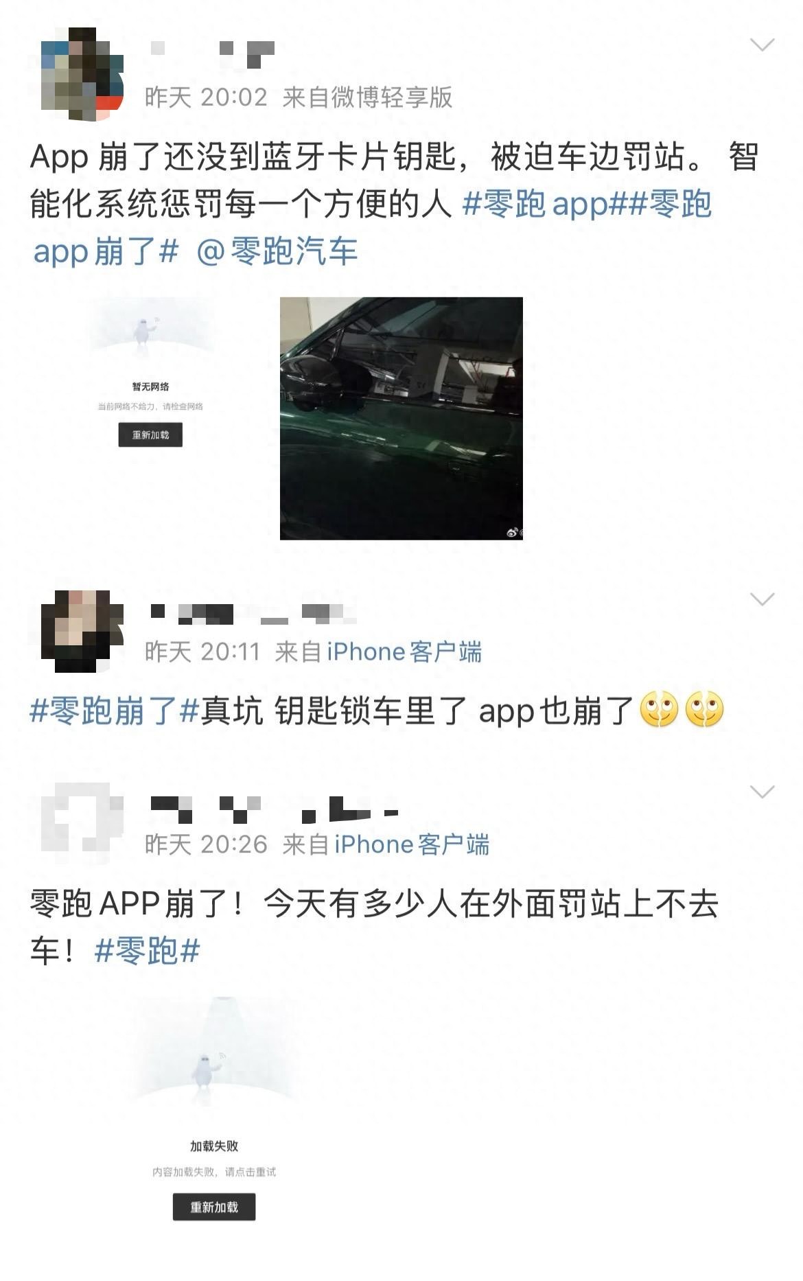 网友反映零跑汽车App崩了。
