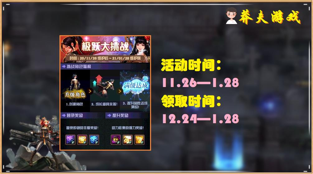 再者就是领取图鉴的时间,活动开始时间为11.26日,最早领取时间为12.24日,这段时间没有凑齐一整套史诗也没关系,因为活动下架时间为1.28日,所以整个活动横跨周期长达2个月还是挺长的,全账号还是非常有希望刷齐一套史诗的。