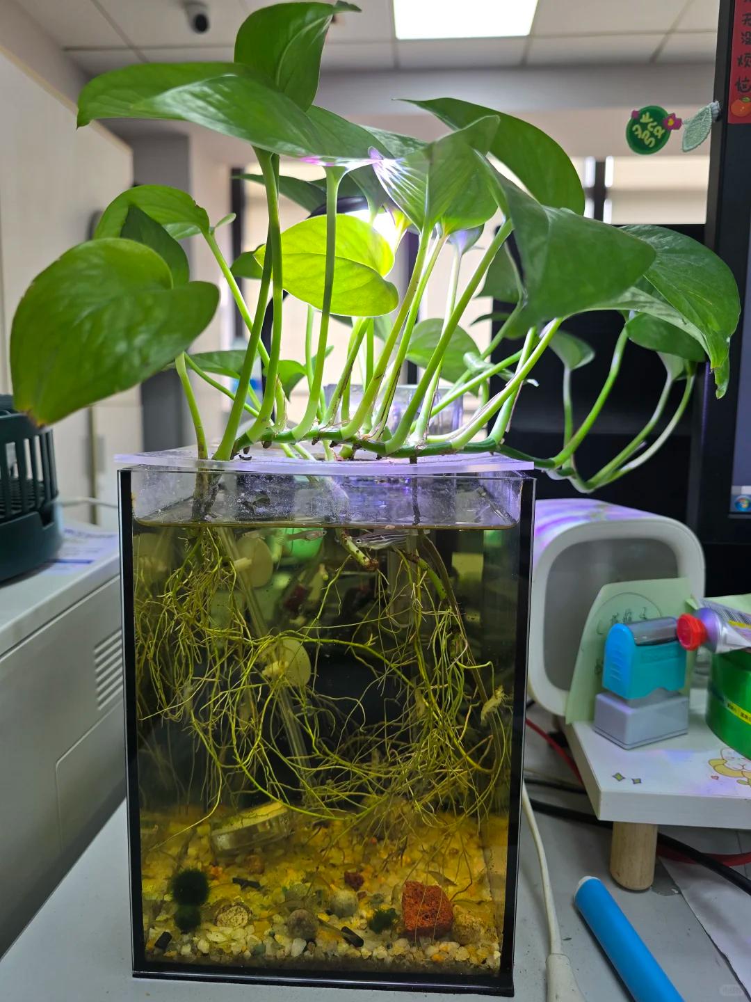 用鱼缸水培过程简单又有趣,看着它们和小鱼一天天生长,成就感瞬间拉满。