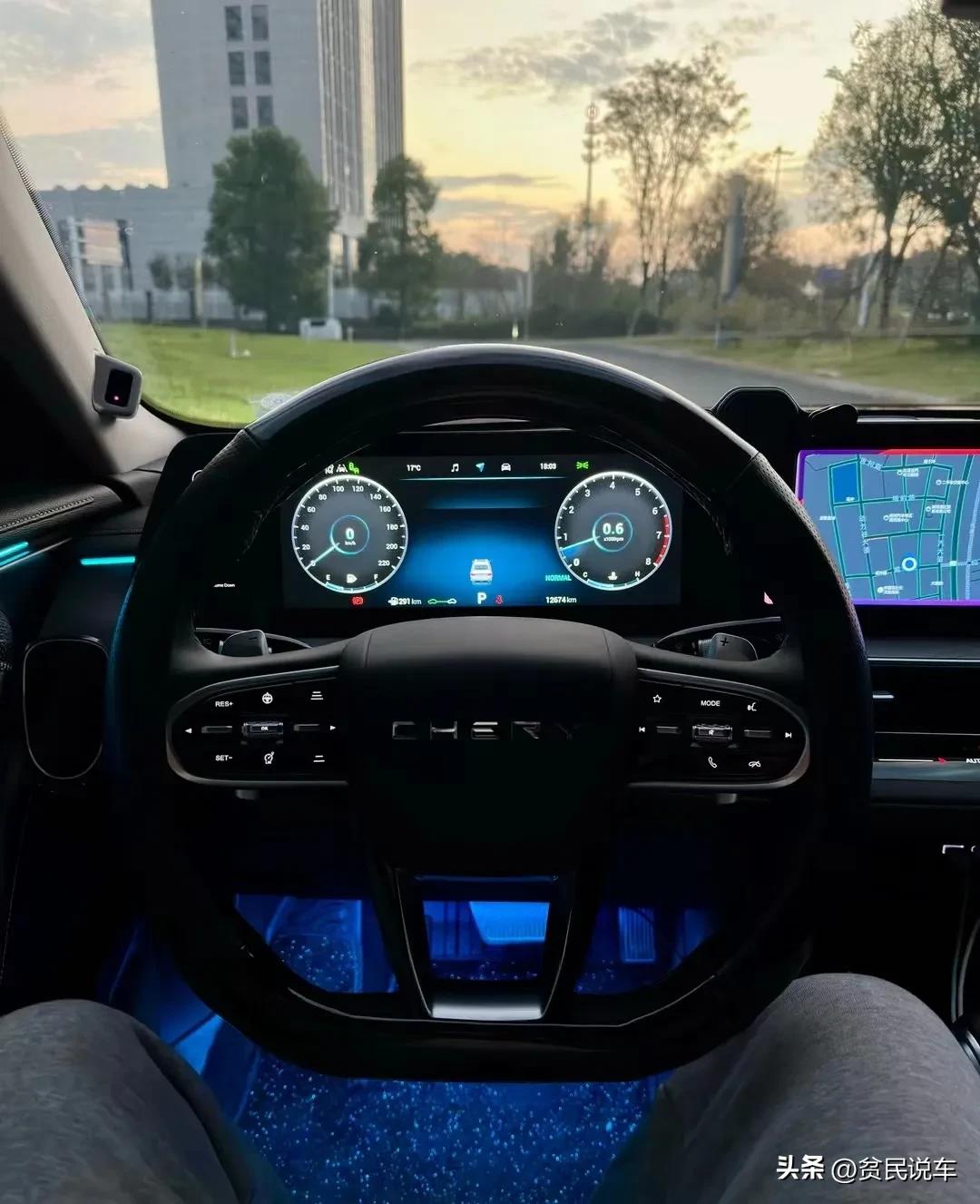 在配置上8.69万的艾瑞泽8配备了多连杆的后悬挂,215/55/r17的熏黑运动轮毂,胎压显示,四个安全气囊,后倒车雷达+影像,定速巡航,多功能方向盘,三种驾驶模式(运动,经济,舒适),发动机启停,自动驻车,可开启的全景大天窗,无钥匙启动和进入,10.25英寸液晶仪表+10.25英寸中控大屏(支持华为和苹果手机投影,语音控制),高德地图导航,全车为LED 灯光并有日间行车灯,这些配置可以说挺实用的除了高科技的360影像,行车该配备的基础功能都有了,且全车内饰皮质包裹到位,结合20.5英寸的巨大双联屏所营造出的科技感,可以说艾瑞泽8卓越版的定价是有所值的,结合八万多的价格,这是越级的品质表现了。