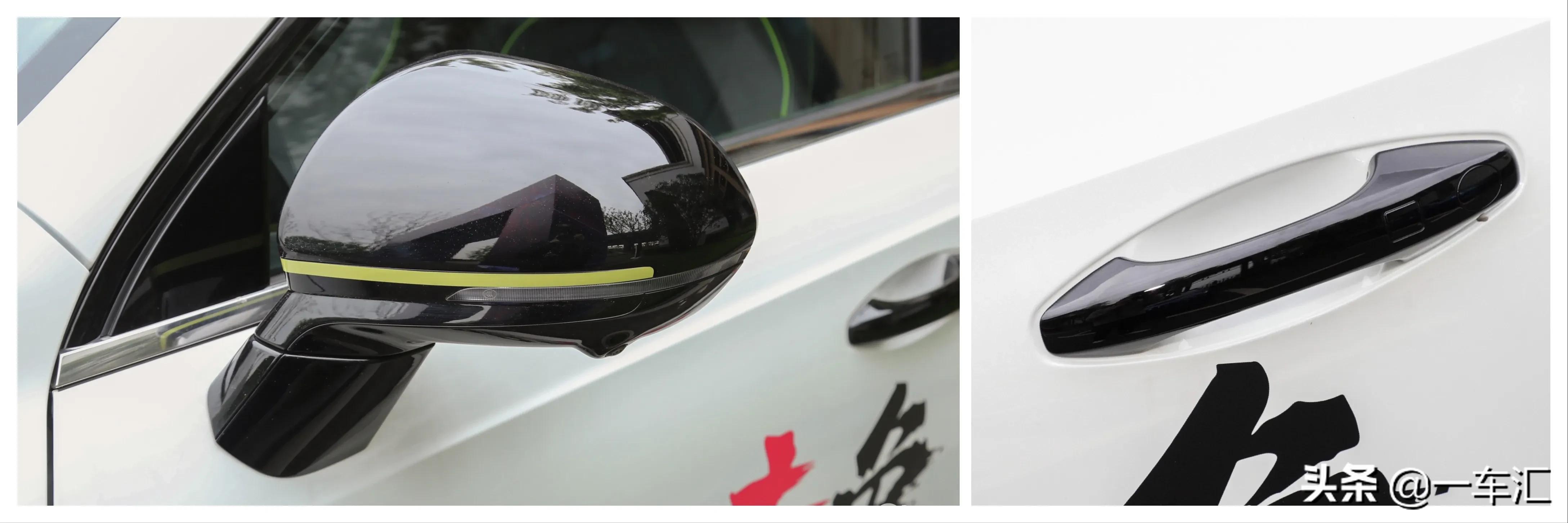 后视镜外壳采用亮黑色涂装,中间辅以青黄色饰条点缀,后视镜集成LED转向灯带,黄金兔和铂金兔版本车型增加车侧摄像头;白银兔版后视镜仅支持单一的电动调节,黄金兔版增加后视镜镜片加热、折叠,铂金兔版再增加后视镜记忆、倒车自动下翻功能。全系标配前排主驾驶位车门无钥匙进入,车内有无钥匙启动和远程启动系统。