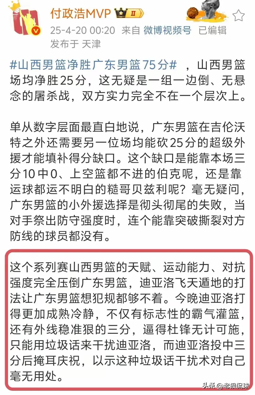 ● 比赛失利 2025年4月19日,在CBA半决赛中,广东队以0比3败给山西队,三场比赛共输掉75分。