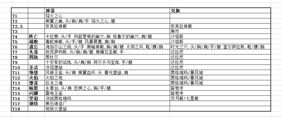 魔兽玩家整理魔兽世界历代套装掉落兑换预览