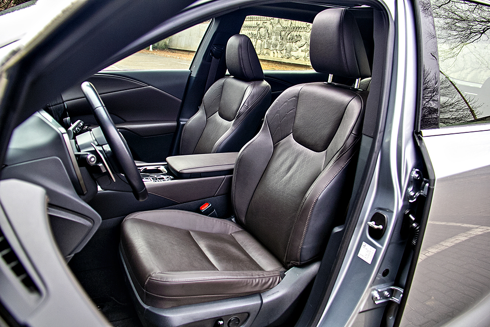 来到车内,东方韵味的内饰氛围一定会让你气定神闲,整个座舱设计源自LF-Z Electrified概念车的"Tazuna缰绳"设计理念,细节上处理很到位,但是因为这台车是一款中配车型,所以很多功能都没有提供,比如多色氛围灯、织物材质包覆的马克莱文森音响系统等等。