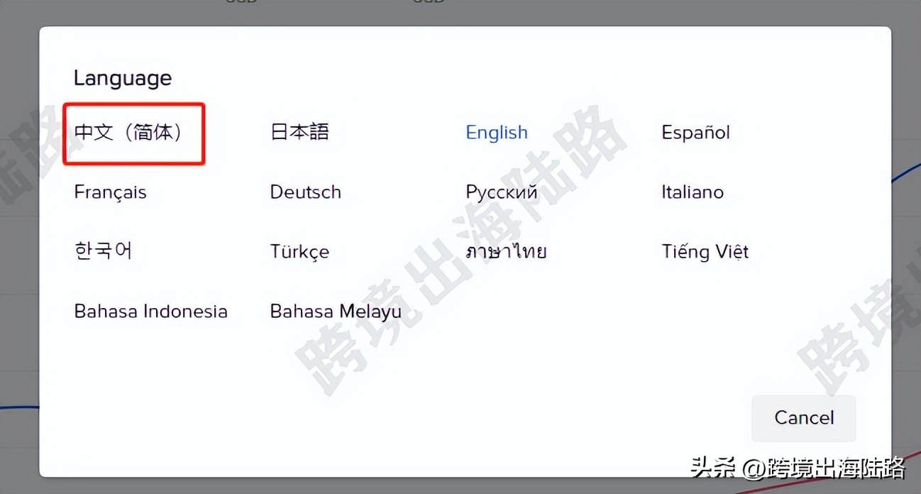 2.点击右上角的当前语言English