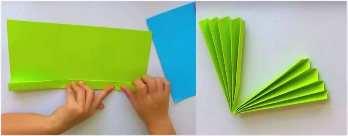 将卡纸折成扇形后,对折~