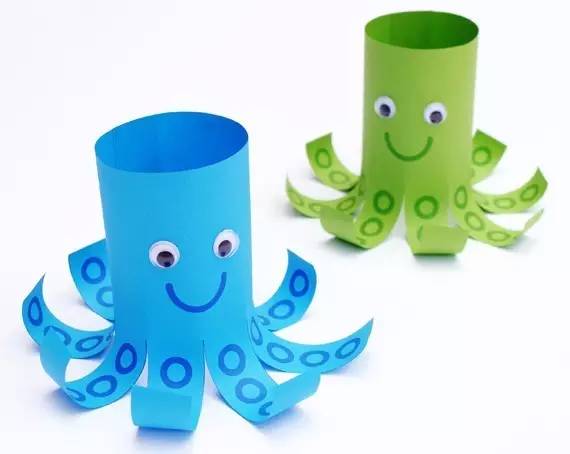 最后,贴上黑、白卡纸做的眼睛,小章鱼就完成啦~