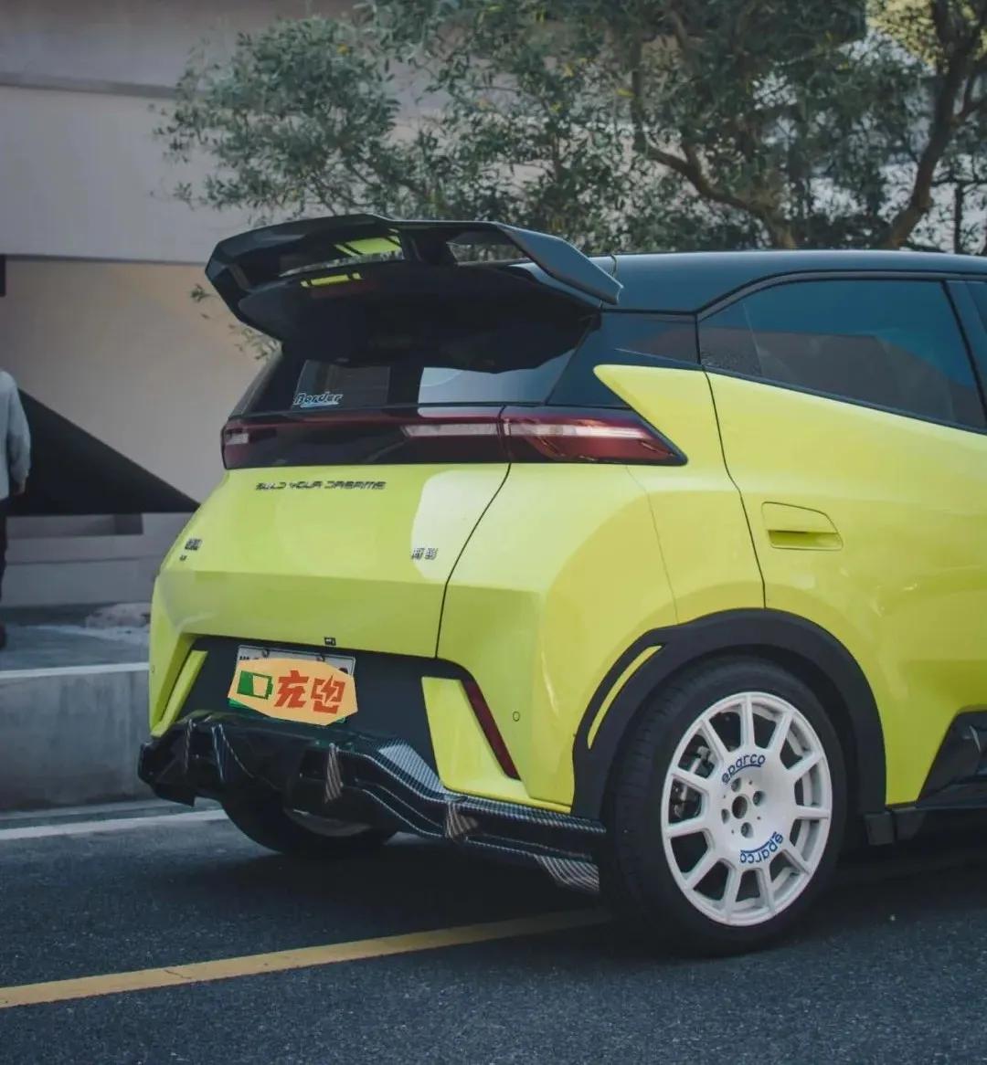 下面这台比亚迪海鸥也挺有意思的,直接换上了碳纤维纹路的前唇和后扩散器,而且在车尾处还装上了大尾翼,这海鸥看着不好惹啊,我看谁还说小车不适合玩这种竞技风格的改装。