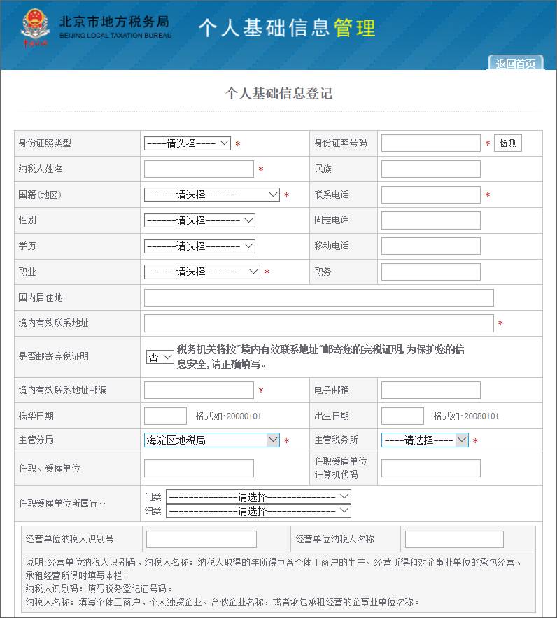 网上查询个人薪金所得税方法:进入“北京市地方税务局”网站,纳税信息查询——进入或直接打开“个人基础信息管理”(网址: