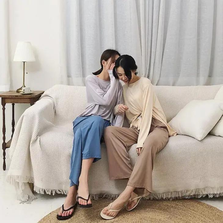 这套莫代尔家居服,不仅可以当睡衣,也可以当运动衣,或是直接分开单穿搭配牛仔裤也很好看。