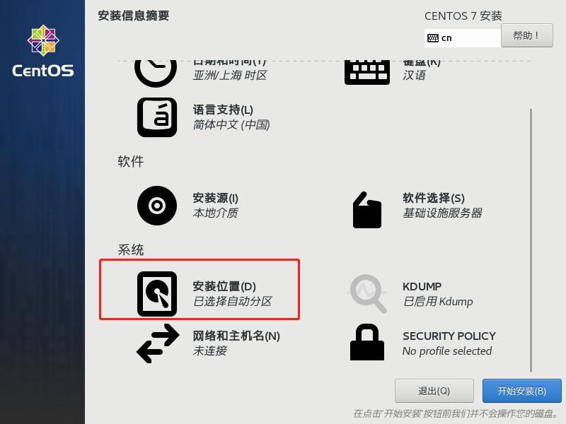 (10)安装过程中,点击ROOT密码,设置root用户的密码。