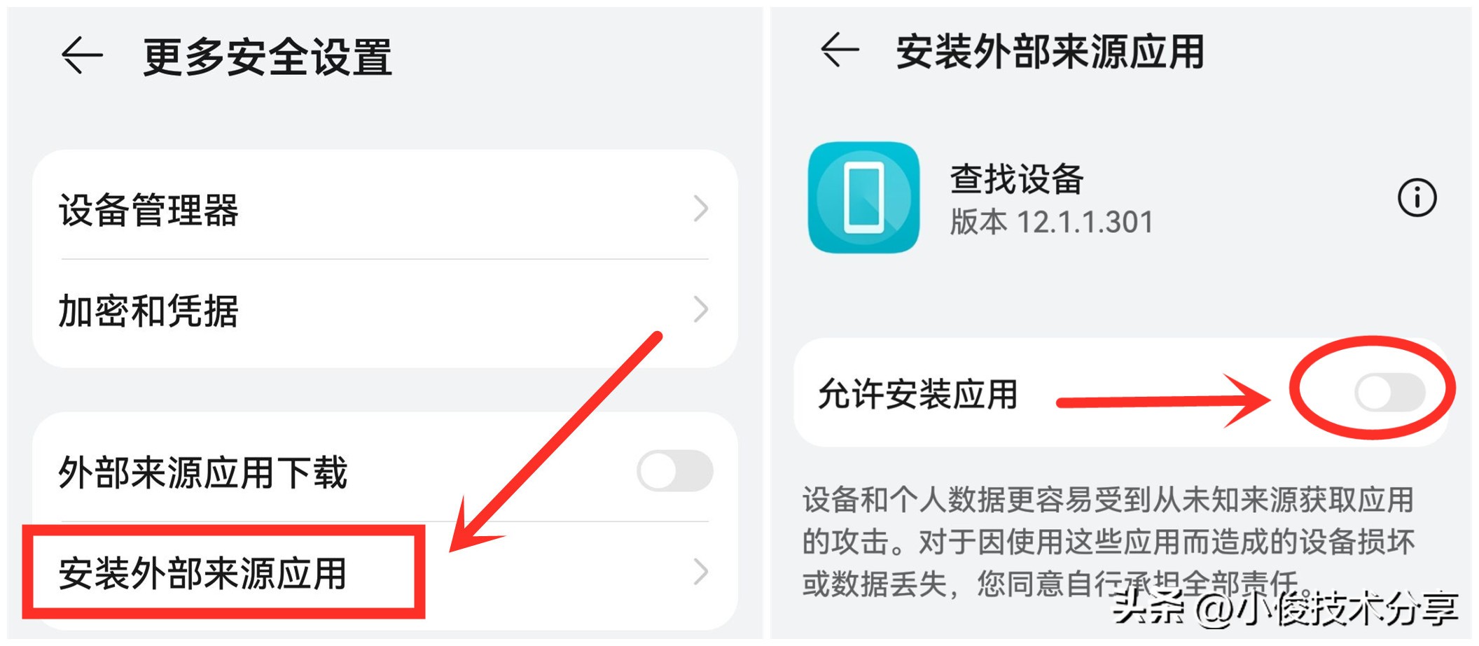 第四个,如果说你的手机中安装的一些应用会自动打开并且弹出广告,那么这很有可能就是因为你手机安装了一些外部来源应用,而且一般这些是恶意应用,所以我们需要把【安装外部来源应用】设置为【不允许】,打开之后,才能防止手机跳到到外部安装一些恶意应用!
