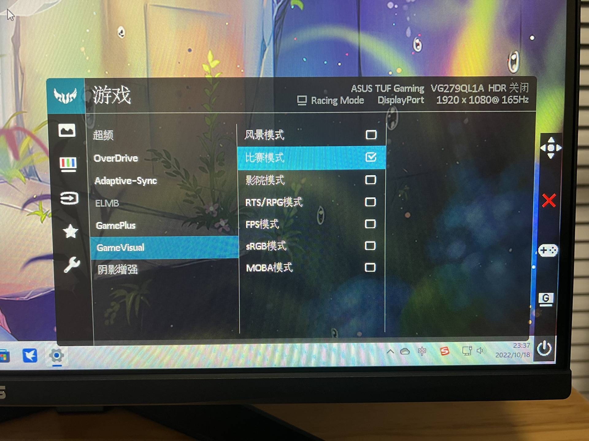 像风景模式看起来色彩就更浓郁一些、FPS模式的对比度会下降一些,看起来的话会有点灰,所以玩不同的游戏用不同的预设获得不同的画面表现,这部分华硕已经给你铺好路了。