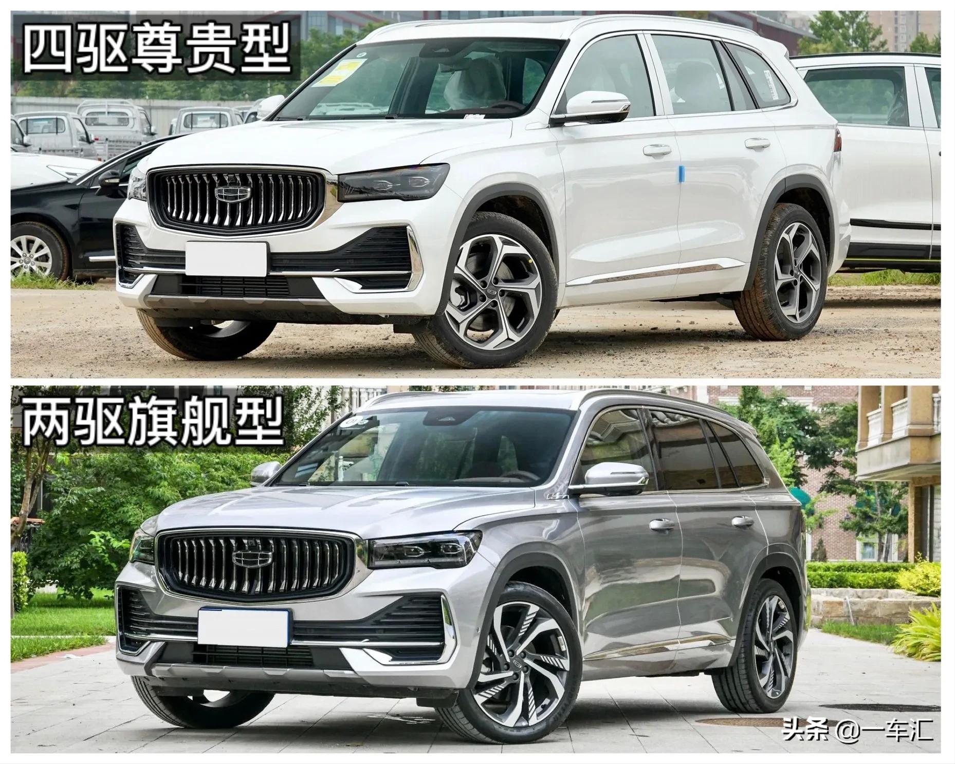 外观方面,不得不说星越L的问世,将吉利汽车的设计高度又拉高了一个层次,略显硬朗的风格有别于之前车型,细节处延续了一些标志性元素,兼顾不错的品牌辨识度。高低配车型在外观上区别不是太大,主要表现在轮毂和镀铬装饰件上;文中仅提供了尊贵型和旗舰型实拍图,没有两款低配舒适型和豪华型车辆配图。