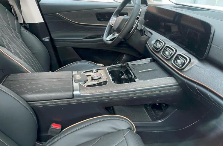 整体没有一点自主设计的感觉,前段时间笔者还夸奇瑞最近几款车型的设计都上道了,没想到这台车的原创度又将奇瑞打回原形,果然还是不能夸太多。当然作为一款旗舰SUV,其内饰用料还是非常高档,比如中控台和操作台都用上特殊的磨砂质感材质,以及随处可见的缝线工艺都体现出一定的豪华感。