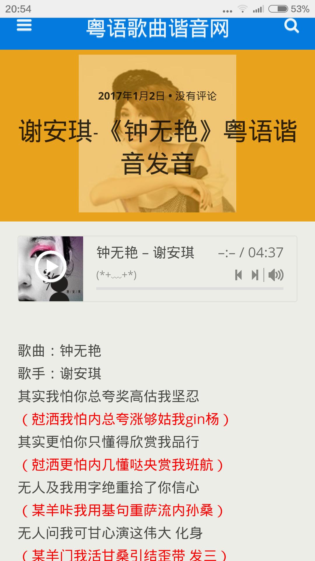 第四首谢安琪的《钟无艳》