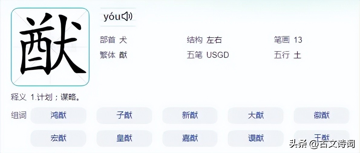 “猷”字不读“quǎn”那该怎么读?“祉猷并茂”是什么意思呢?
