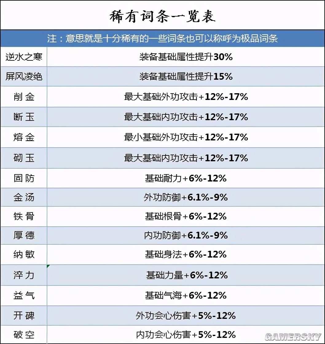 稀有词条:意思就是十分稀有的一些词条,也可以称呼为极品词条