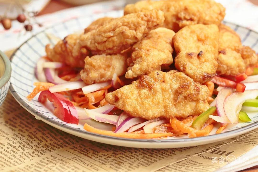 鸡胸肉比较多,炸到一半需要关火把油温降下来之后,继续进行油炸,否则后面的鸡胸肉容易被炸糊。