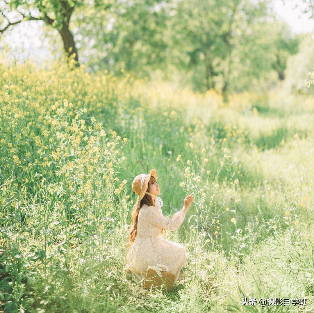 上面这张照片,拍摄角度并没有太大的问题,但是被拍摄的人,从花海当中露出的部分太小了。大叔的表情倒是不错,但是这种拍摄方法,更接近于搞笑。如果是女士,想要优美,可以参考下面的技巧。