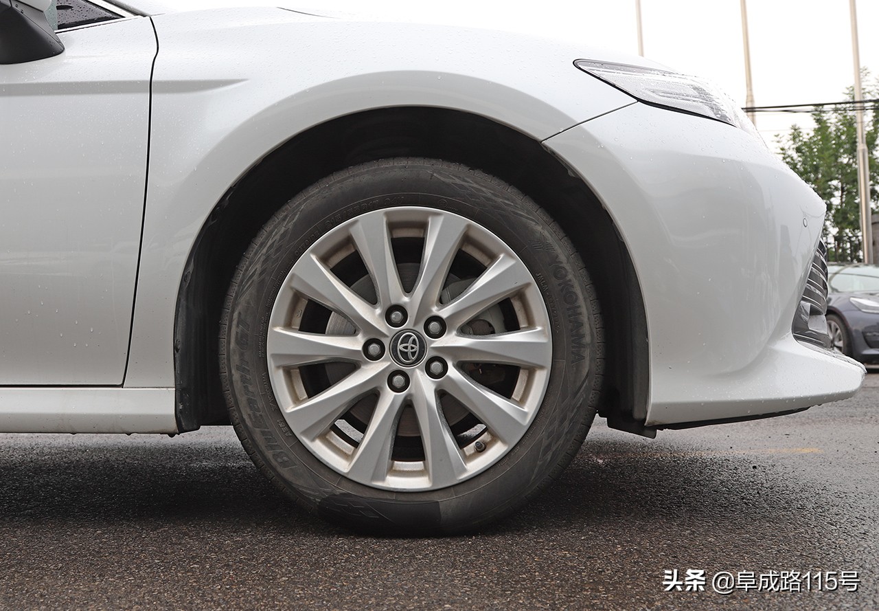 在车身尺寸方面,凯美瑞的长宽高分别为4885x1840x1455mm,轴距为2825mm。在设计上,凯美瑞采用了大量的曲线来衬托出车侧的柔美。轮胎采用了215/55 R17的横滨BluEarth GT AE51轮胎,这是一款强调高速稳定性和湿滑路面抓地力的轮胎。只是这多辐轮圈的造型有些平淡。