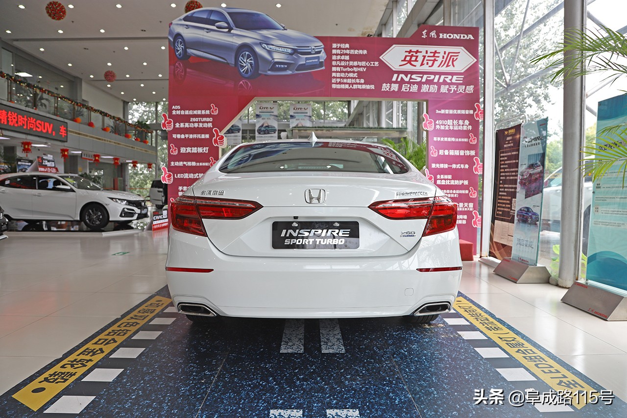 仔细分析INSPIRE英诗派的配置表你会发现,它与雅阁的在售的版本十分相似。INSPIRE英诗派全系4款1.5T、3款2.0L混动。据店内销售人员给我们的反馈,卖的最好的车款是售价为19.28万元的260TURBO精致版(次低配),也就是图中我拍到的这款车型。