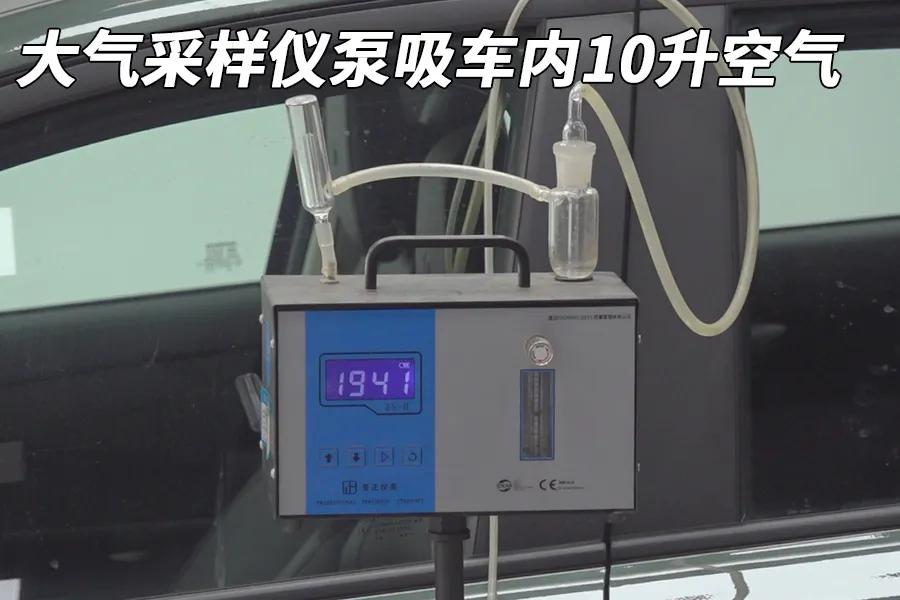 测试方法:将测试车辆在自然环境中,打开车门车窗进行完全通风;随后,将一根硅胶软管固定在司机头枕附近,模拟人呼吸位置;关闭车门车窗,将车辆停在恒温23±1℃的环境中密封静置16小时;使用采样仪从软管泵吸出10升车内空气,与酚试剂反应;将显色剂滴入酚试剂中,静置15分钟;使用醛正甲醛检测仪将显色后的样本进行检测,得出结果。