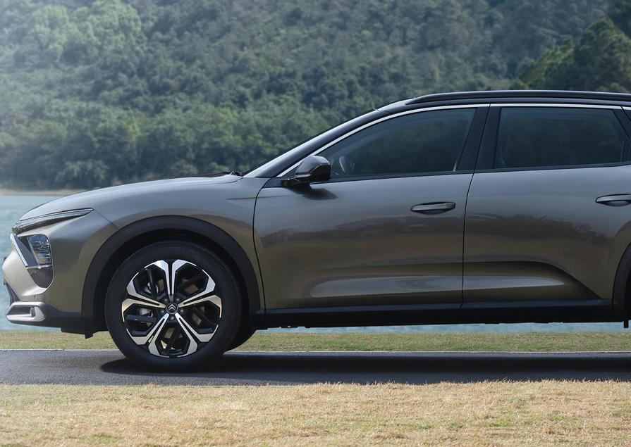 车型侧面,这款凡尔赛C5X自带了车顶行李架,确实非常实用。此外,双色外观,悬浮式的车顶,18英寸的花瓣轮毂,米其林的轮胎都有着足够的分量。从侧面来看,新车有着足够时尚的旅行车外观。