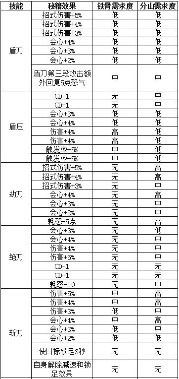 一言以蔽之,作为一个T请最优先读满盾墙的3本减CD的,其次照顾到DPS可以把劫刀和斩刀的相关秘籍读完