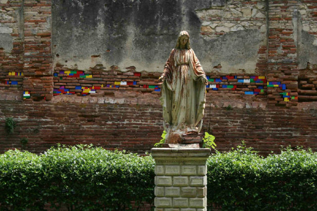 「乐高」就是其中之一的元素,很难想象,用乐高来修补古墙是一种什么样的画风