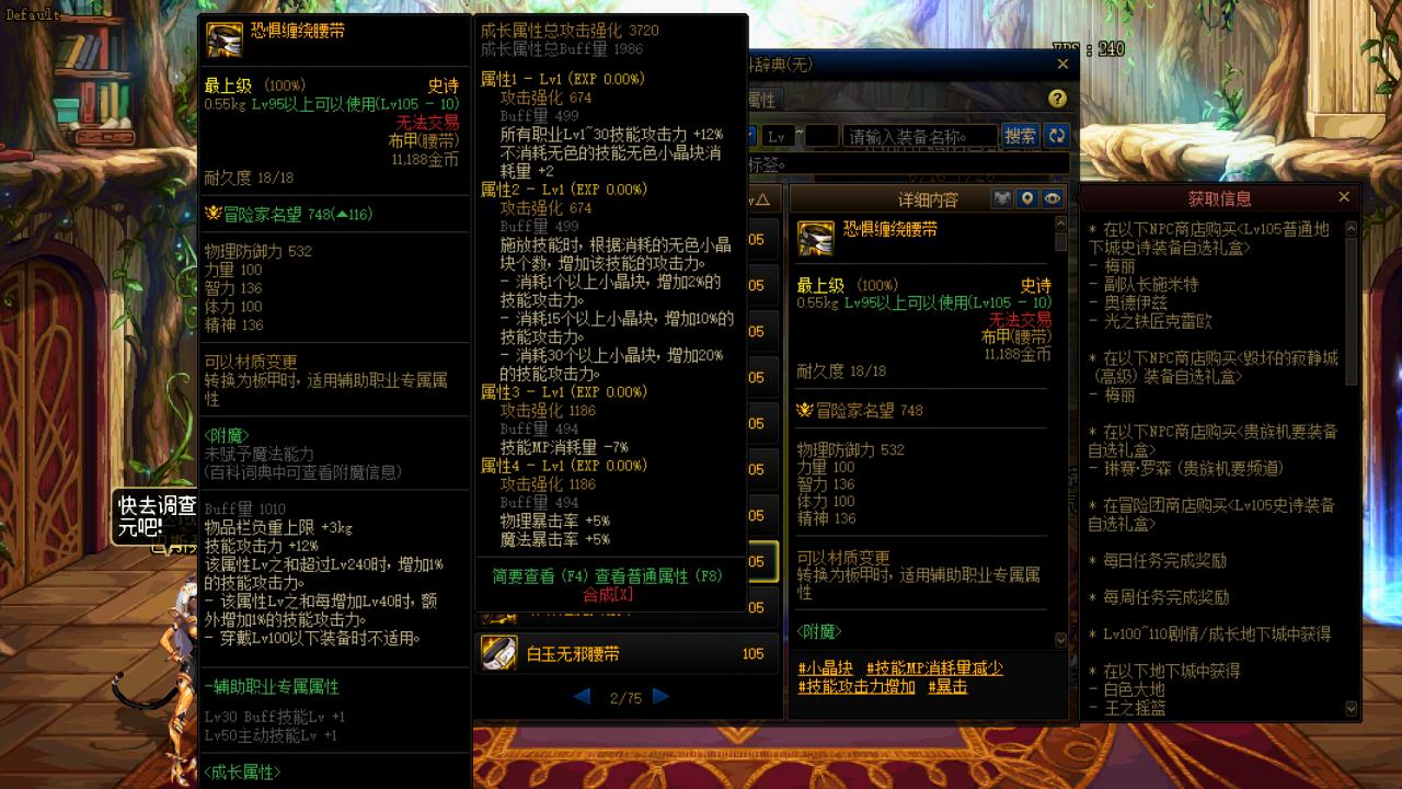我们只需要查看已有装备上BUFF总量最大,名望最高的的装备即可。