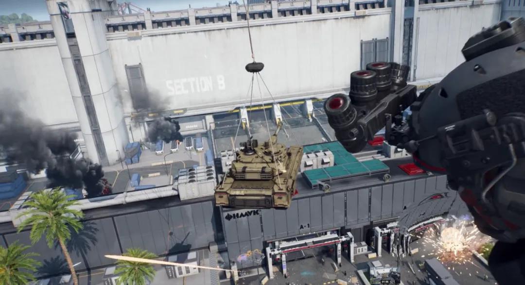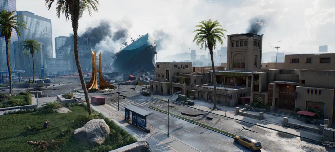 新的全面战场地图“临界点”,则是一张港口和城区结合起来的地图。从宣传片来看,“临界点”的设计风格有别于沙漠小镇“烬区”和海岛基地“攀升”,选用足够的高楼大厦分割战线,迫使双方争夺垂直优势,投入中近距离巷战乃至室内战的搏杀中。
