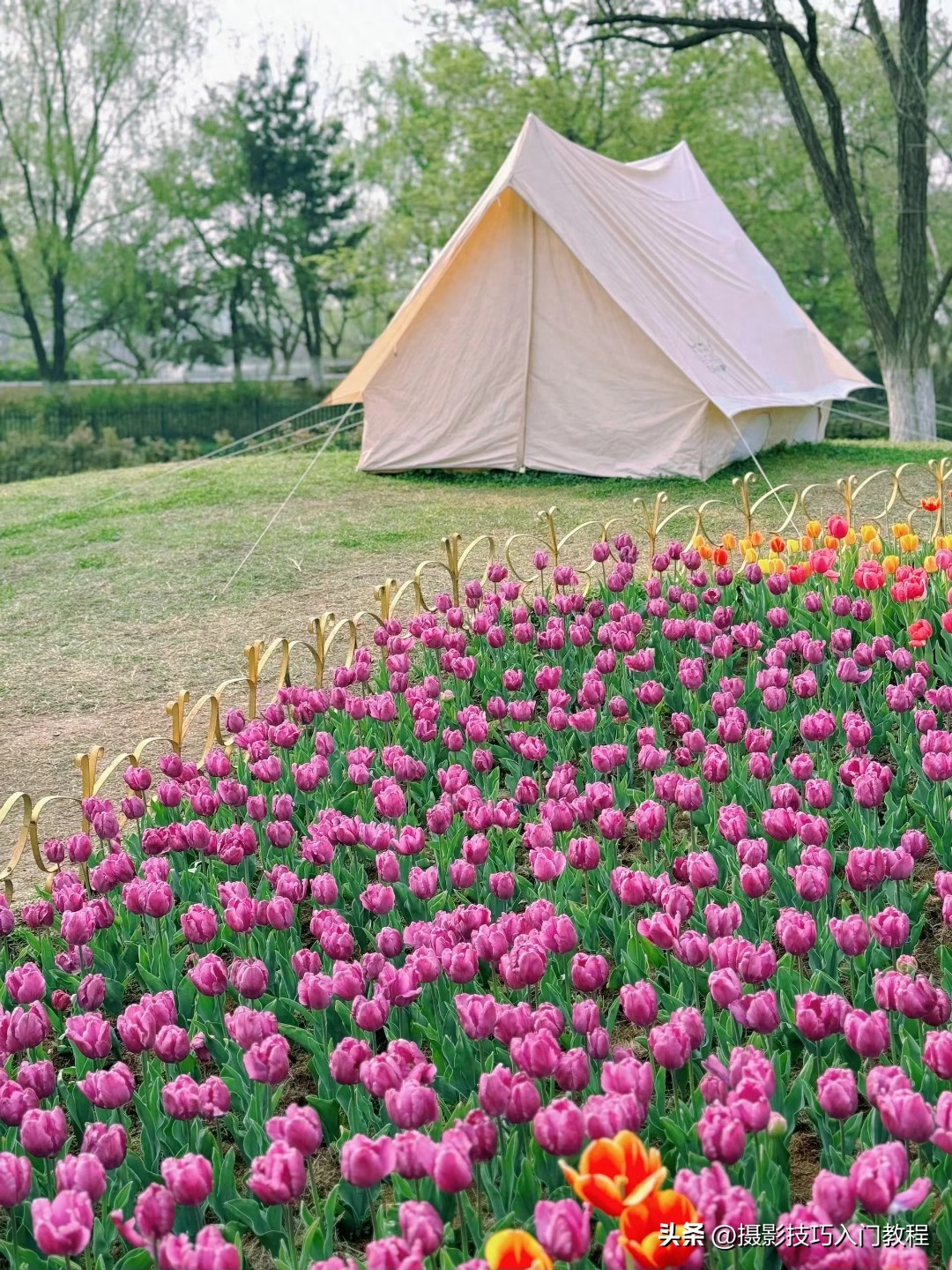 遇到像那种比较低矮的花海,大家可以试着用竖构图,高角度来拍,尽量让画面看起来花很多。还可以巧用前景,丰富画面层次与美感。