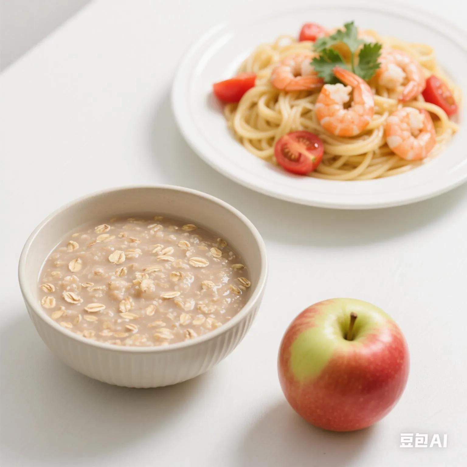 早餐:牛奶燕麦粥(燕麦50g + 牛奶200ml + 奇亚籽1勺)➕半个苹果