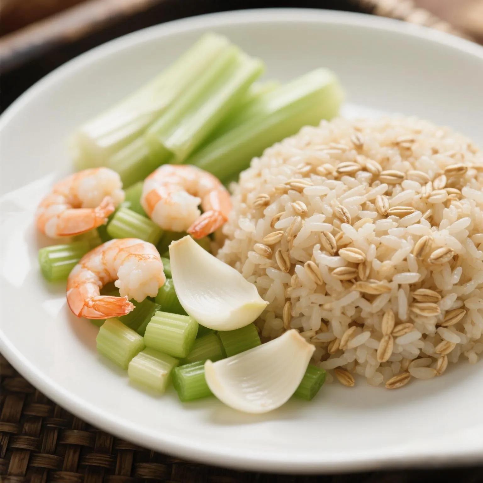 午餐:藜麦饭➕百合虾仁炒西芹(虾仁100g + 百合20g➕藜麦50g)