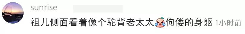 一个是说宋祖儿体态好差,驼背伸脖,看着像个“小老太太”,这个嘛,宋祖儿是95后,现在的年轻人有几个不是成天驼背玩手机呢……