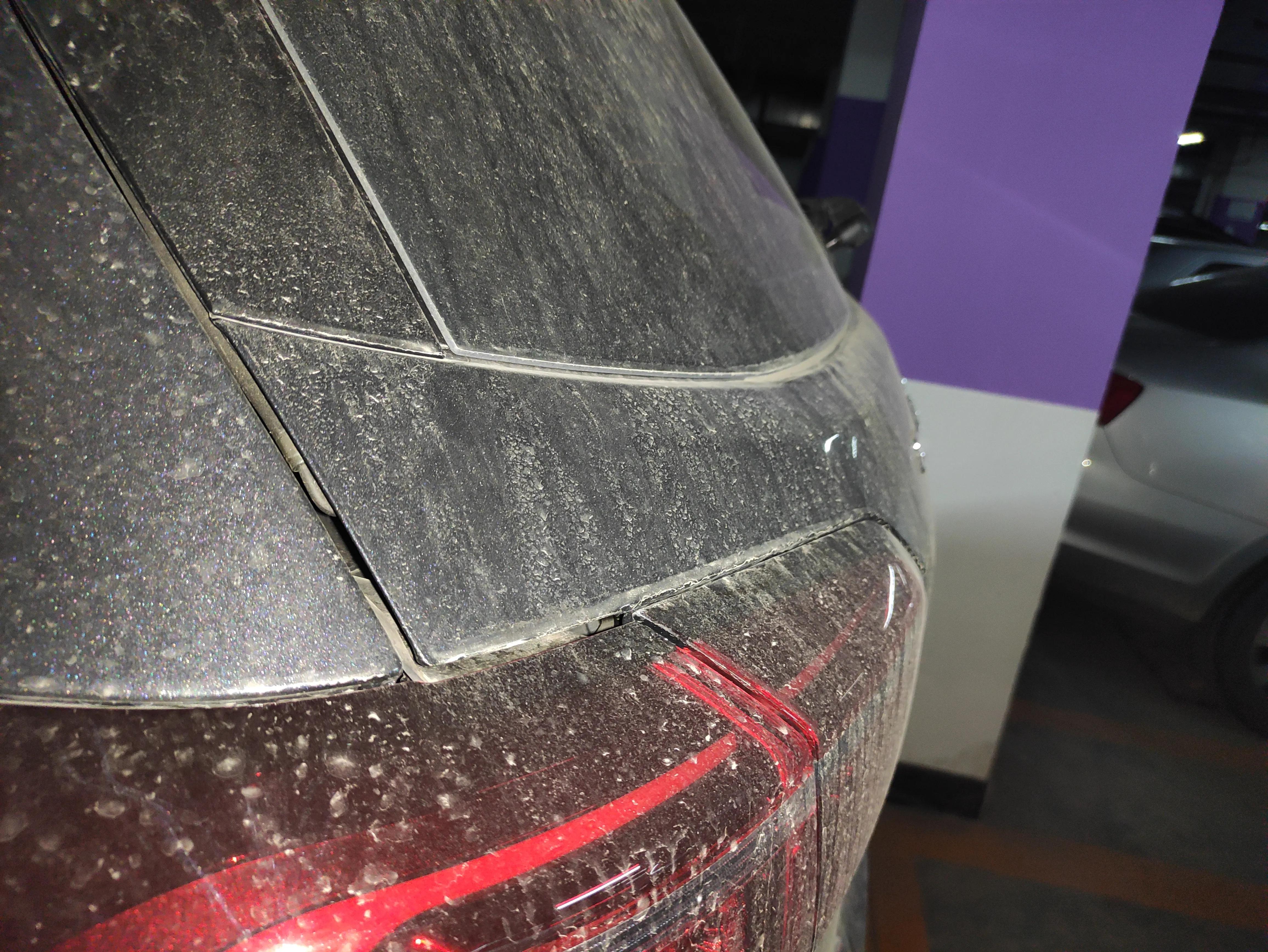 至于怎么选择我建议如果你不是勤快人又对白色和钛金灰不排斥的话,建议优先选择白色或者钛金灰!白色和钛金灰确实家用车务实之选!如果你是绝对的颜值主义者建议选择水星灰、莱茵蓝、星云紫这几种颜色,都挺漂亮的!特别说明一下水星灰这个颜色洗干净之后真的是惊艳,跟某豪车那个灰色非常相近。所以人勤快,能够经常洗洗车的话这三个颜色绝对不会让你们失望!但是这个水星灰真的是不耐脏,脏了之后颜值也是啪啪的掉!请看下图我的水星灰大虎子淋雨之后的照片,惨不忍睹!看了害怕了就选个白色或者钛金灰这样的耐脏的颜色吧
