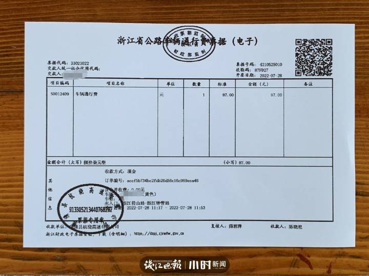 8月1日起,浙江还贷高速公路收费站全面推行电子票据