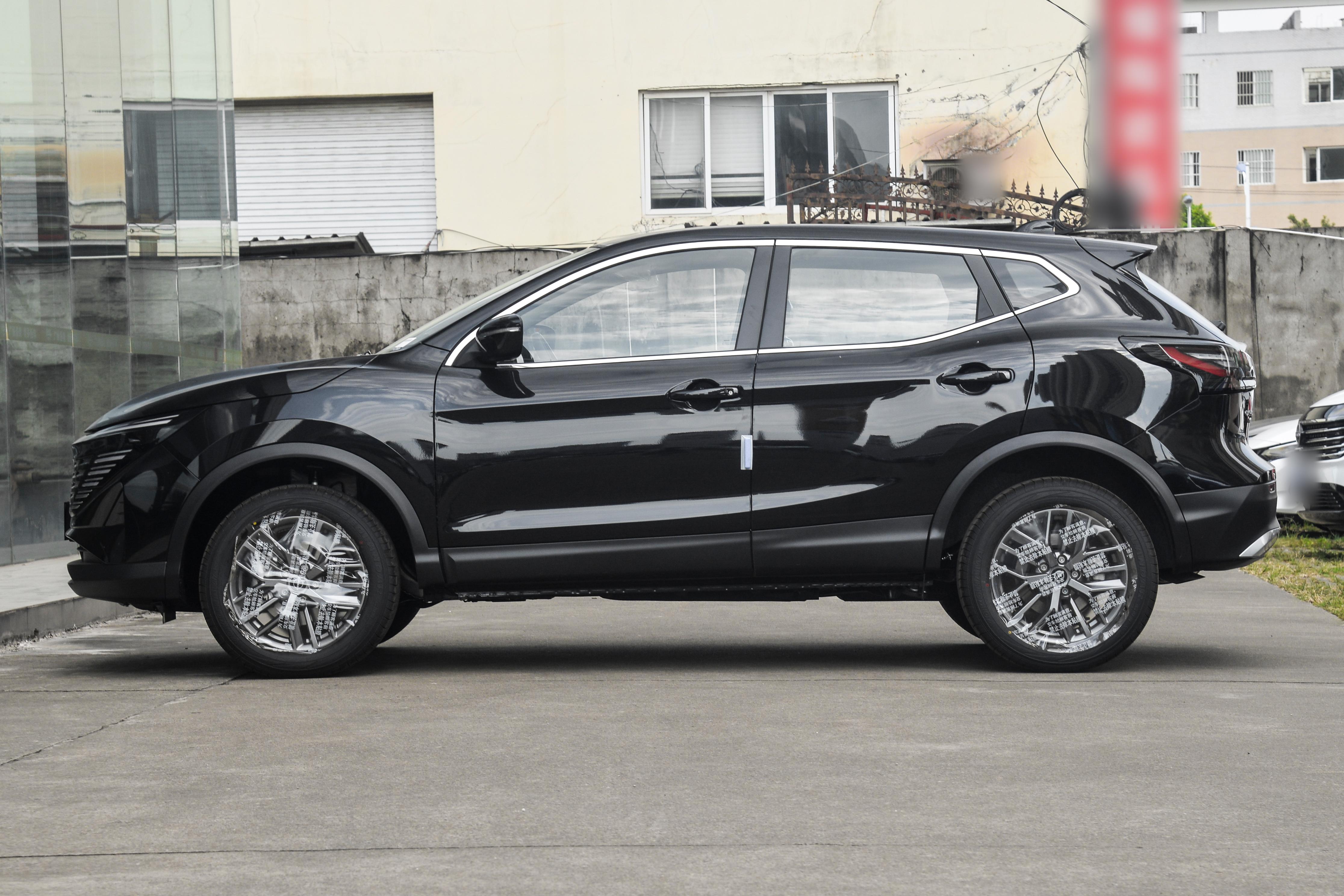 来到车身侧面一根上扬的腰线一直贯穿延续到溜背式车尾,最下方采用大面积黑色包围贯穿着215/60 R17的轮胎,整个车身侧面看起来比例协调。