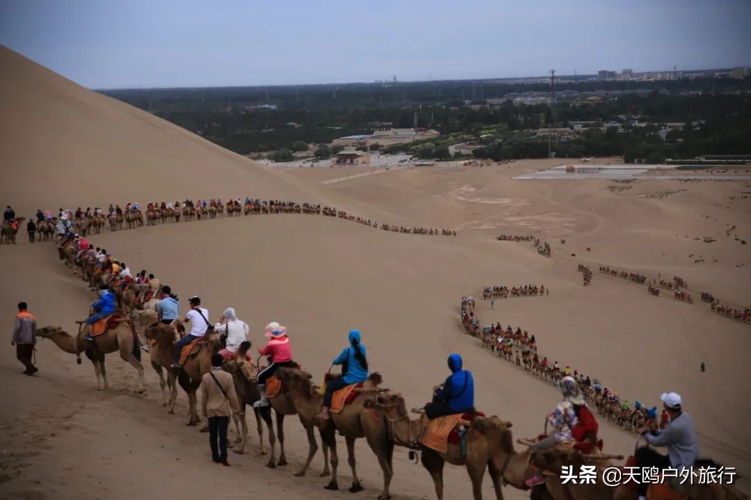 100元骑骆驼体验一圈鸣沙山,上千头骆驼挤骆驼会是怎样的风景