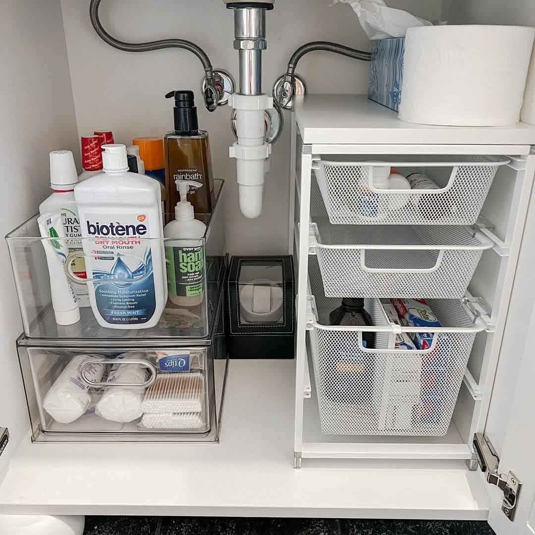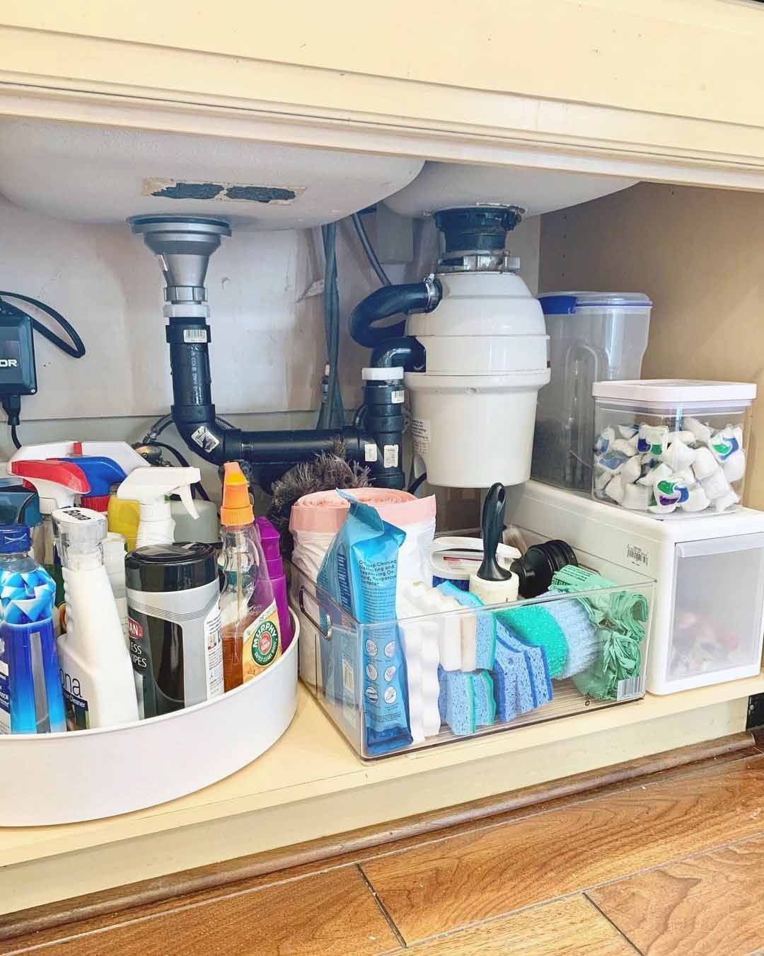 厨房清洁剂、洗洁精通常会放在水槽下方,想要看起来整齐,建议能利用文件盒收纳,将杂乱的外观藏起来。