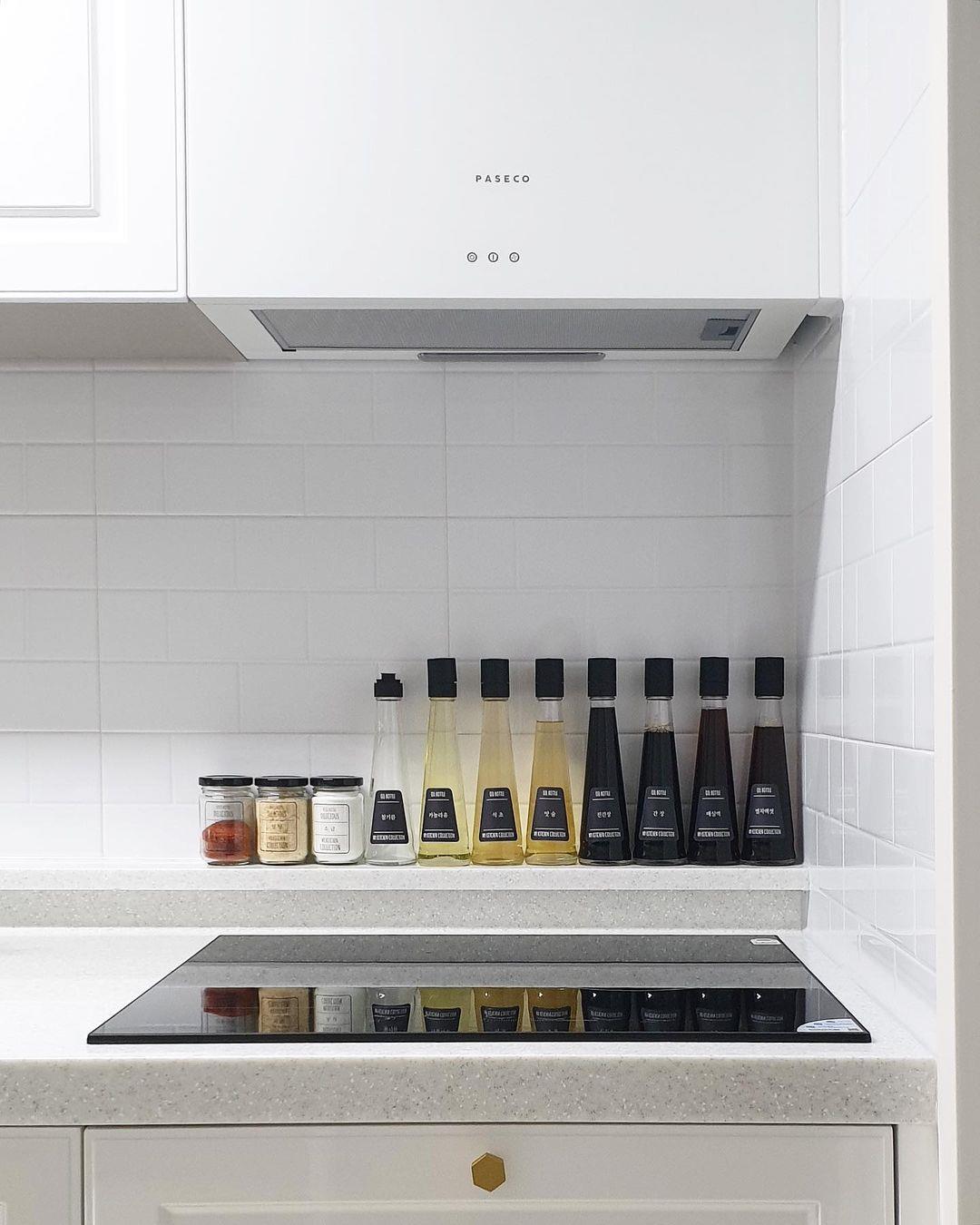 调味料的种类太多,建议用相同的调味料罐统一收纳,能收在抽屉或炉灶四周。